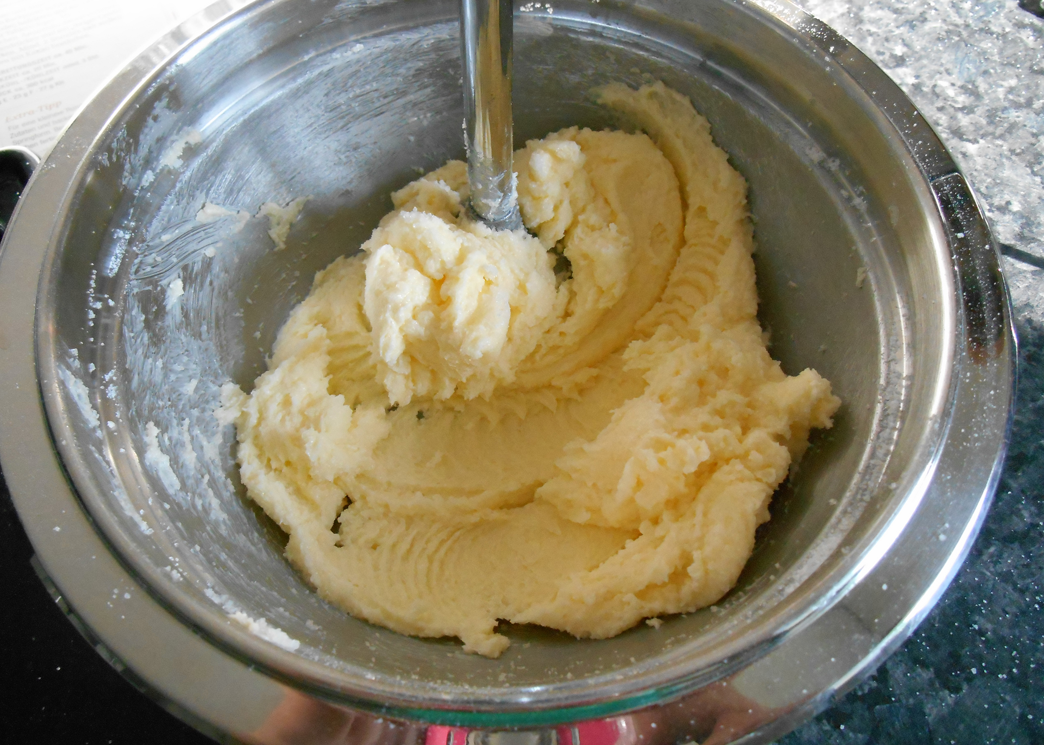 Zu Beginn wird der Boden der Schnitten, also das Biskuit, zubereitet. Dazu die weiche Butter, 200g Zucker und ein Päckchen Vanillezucker in einer Schüssel cremig rühren. Nach und nach die Eier und 1dl Vollrahm hinzugeben. Das ganze gut vermischen.