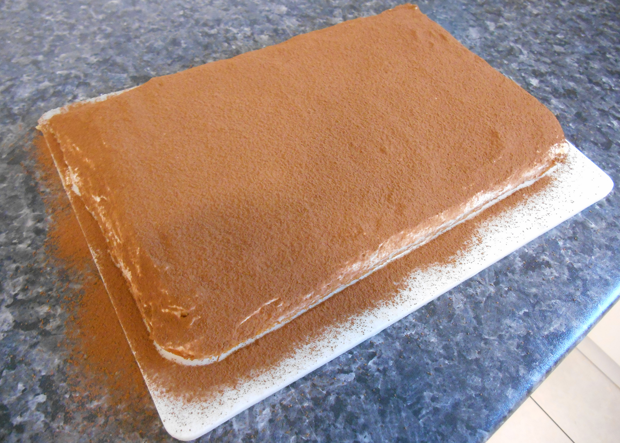 Kurz vor dem Servieren, den Kuchen mit reichlich Kakaopulver bestäuben und in gleich grosse Stücke schneiden.