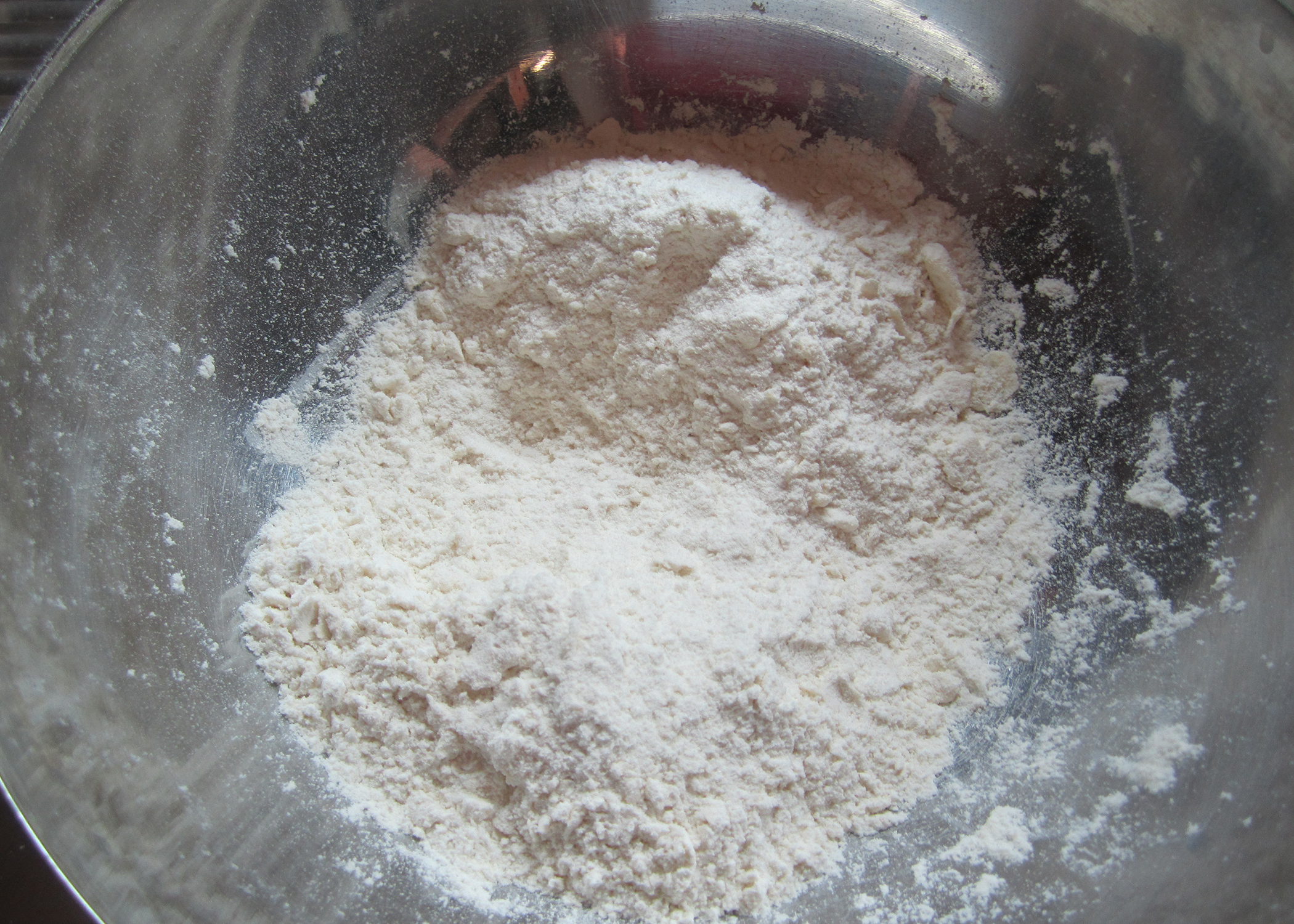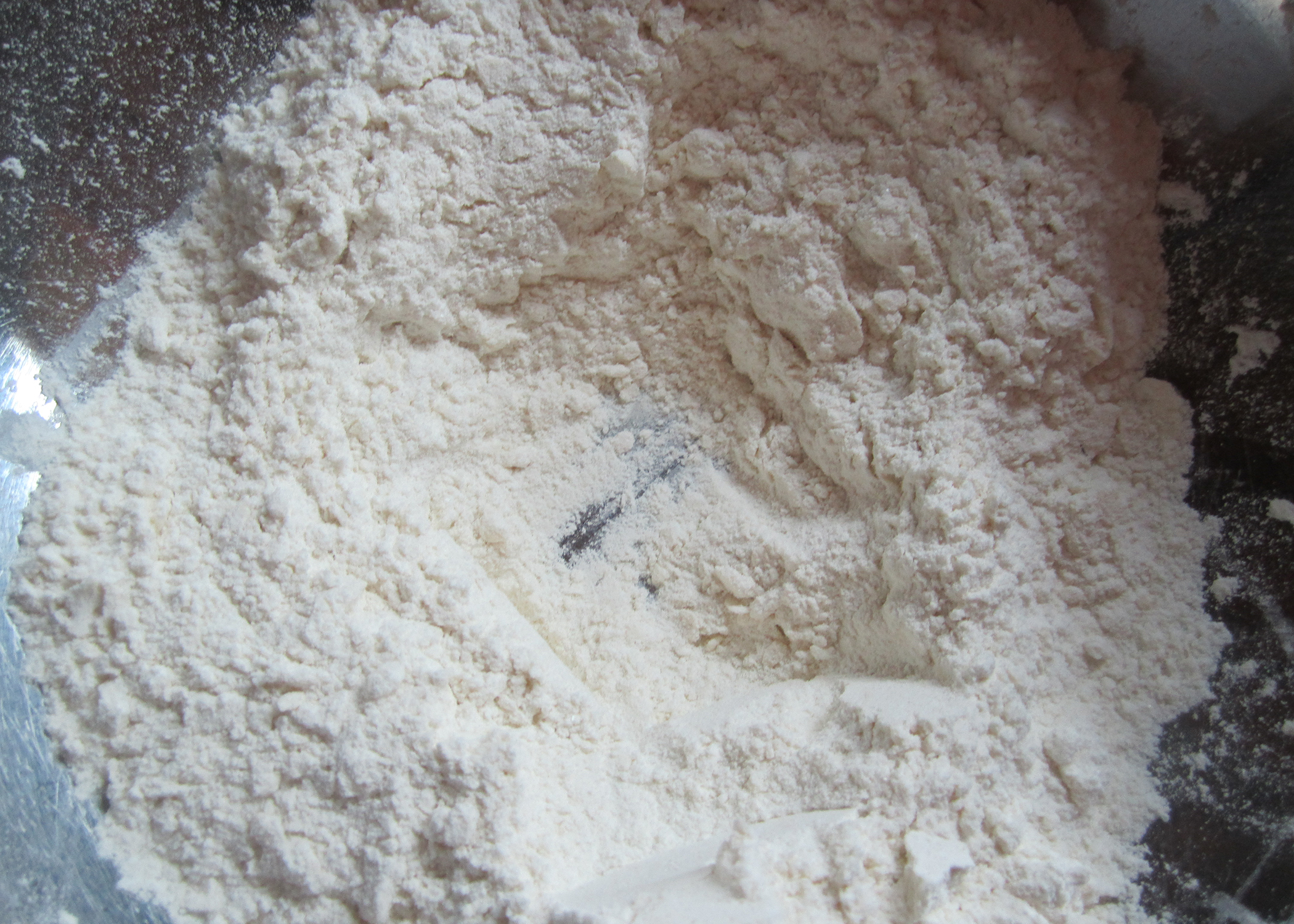 Als erstes das Mehl mit dem Salz und dem Zucker mischen. Anschliessend die weiche Butter dazugeben und verrühren oder verreiben. In der Mitte der Mischung eine kleine Mulde formen.