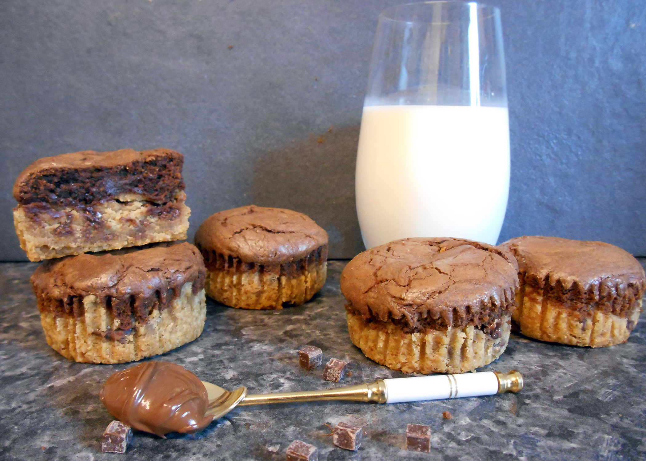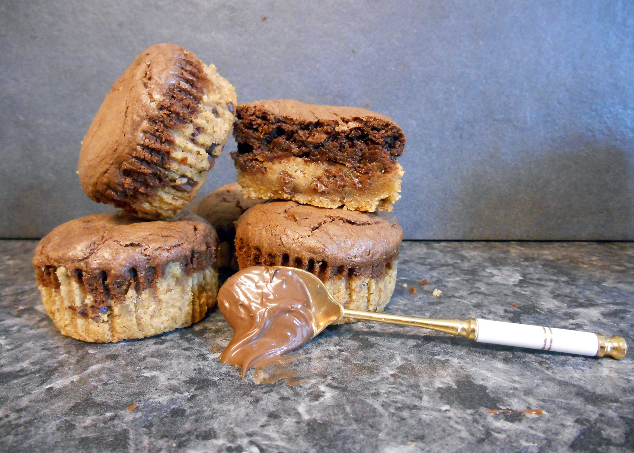 Nutella kann vielseitig verwendet bzw. vernascht werden. Eine sehr leckere Art: Cookies in Nutella tunken und anschliessend auf der Zunge vergehen lassen. Diese Kombination ist in diesem Rezept umgesetzt. Eine fast pure Nutellamasse wird ganz einfach auf einen Cookieboden gegeben, dann gebacken und schon sind die tollen Muffins bereit, um verspeist zu werden.