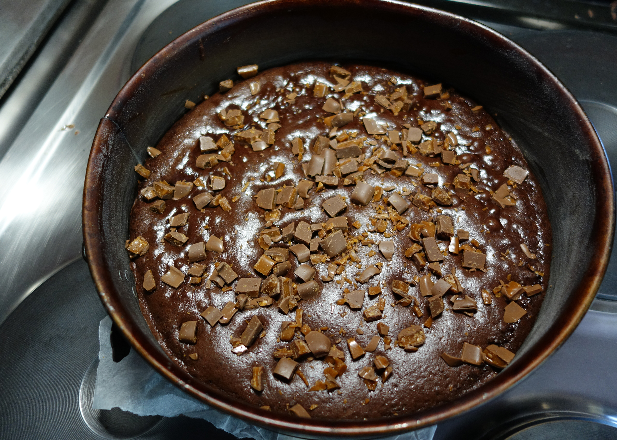 So kam es auch dass ich für meine letzte Wirtschaft und Rechts-Stunde etwas backen wollte, da ich zuvor meistens anlässlich einer Prüfung etwas für alle gebacken hatte. Gefordert wurde Schokolade und eventuell noch Caramel, aber vor allem eigentlich eine Überraschung. Auf meinem lecker.de-App habe ich dieses Rezept für eine Brownietorte mit Daim-Stücken gefunden. Somit waren die wünsche „Schokolade“ und „Caramel“ beide erfüllt.