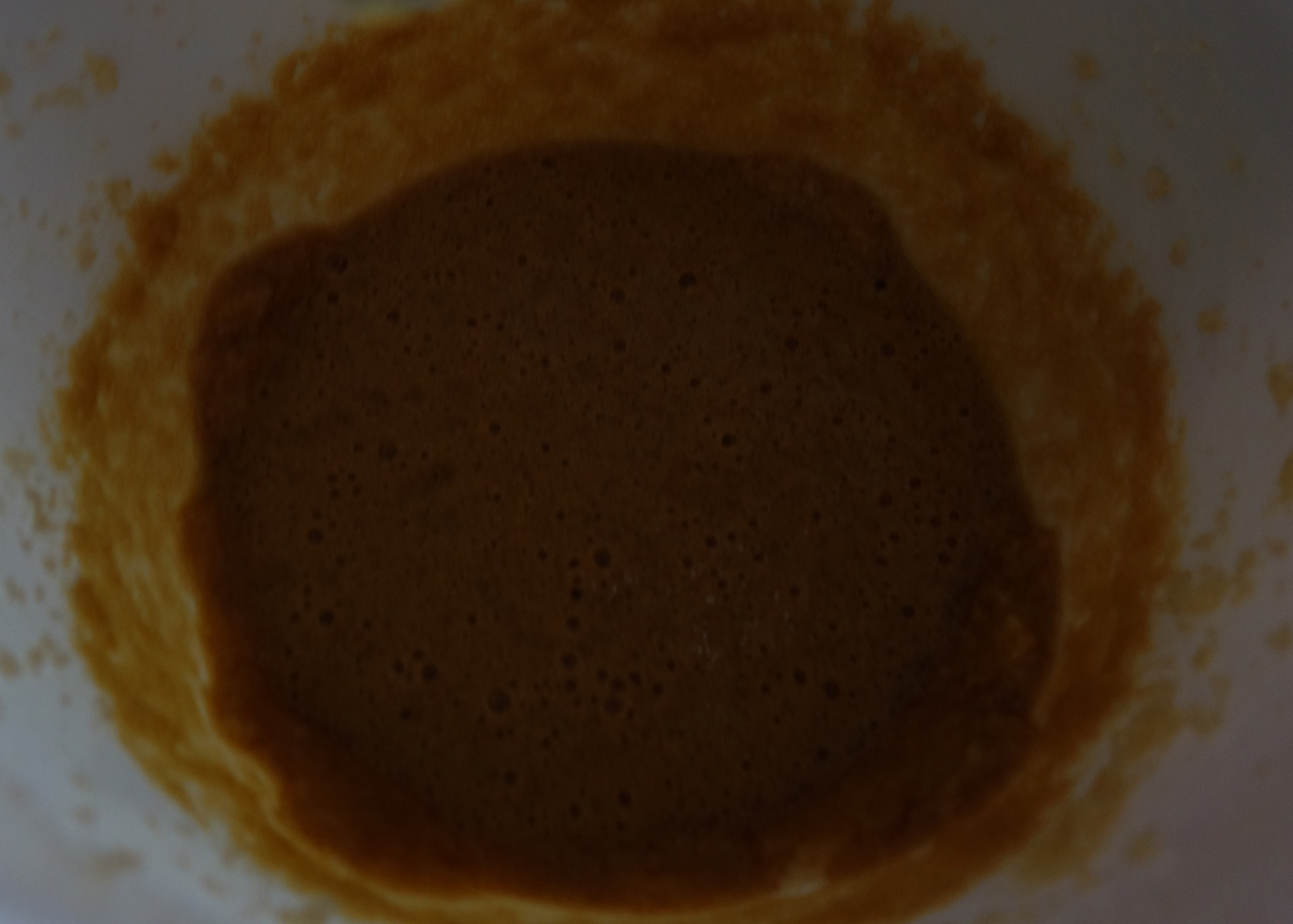 Anschliessend die Butter, weisser Zucker, brauner Zucker und Vanillezucker cremig rühren. Dann die Ei-Kaffee-Mischung unterrühren.