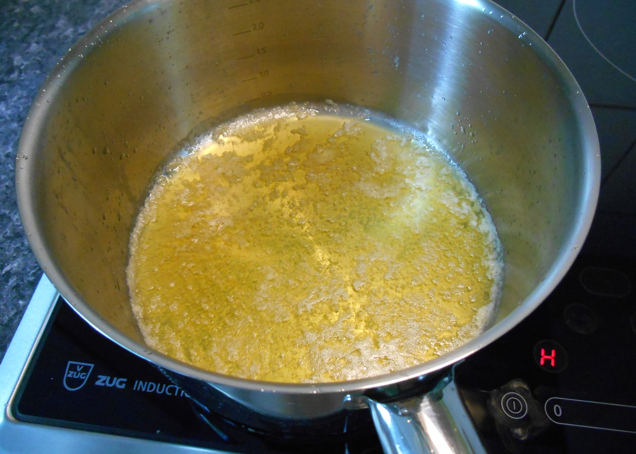 Als erstes wird der Totenboden zubereitet. Dazu den Tortenring (Ø20cm) auf eine eingefettete Tortenplatte setzen. Die Butter in einer Pfanne unter mittlerer Hitze schmelzen. Die Mandeln grob hacken und anschliessend in einer Bratpfanne ohne Fett goldbraun rösten. Die Petit Beurre in einen Beutel geben und zerbröseln. Nun die Keksbrösel zusammen mit den Mandeln in die Butter geben, umrühren und anschliessend in den Tortenring füllen. Die Masse gut auf die Platte andrücken und dann für mindestens 30 Minuten kalt stellen. (Die Heidelbeeren bereits aus dem Gefrierfach nehmen, damit sie bei der Verwendung nicht mehr gefroren sind).