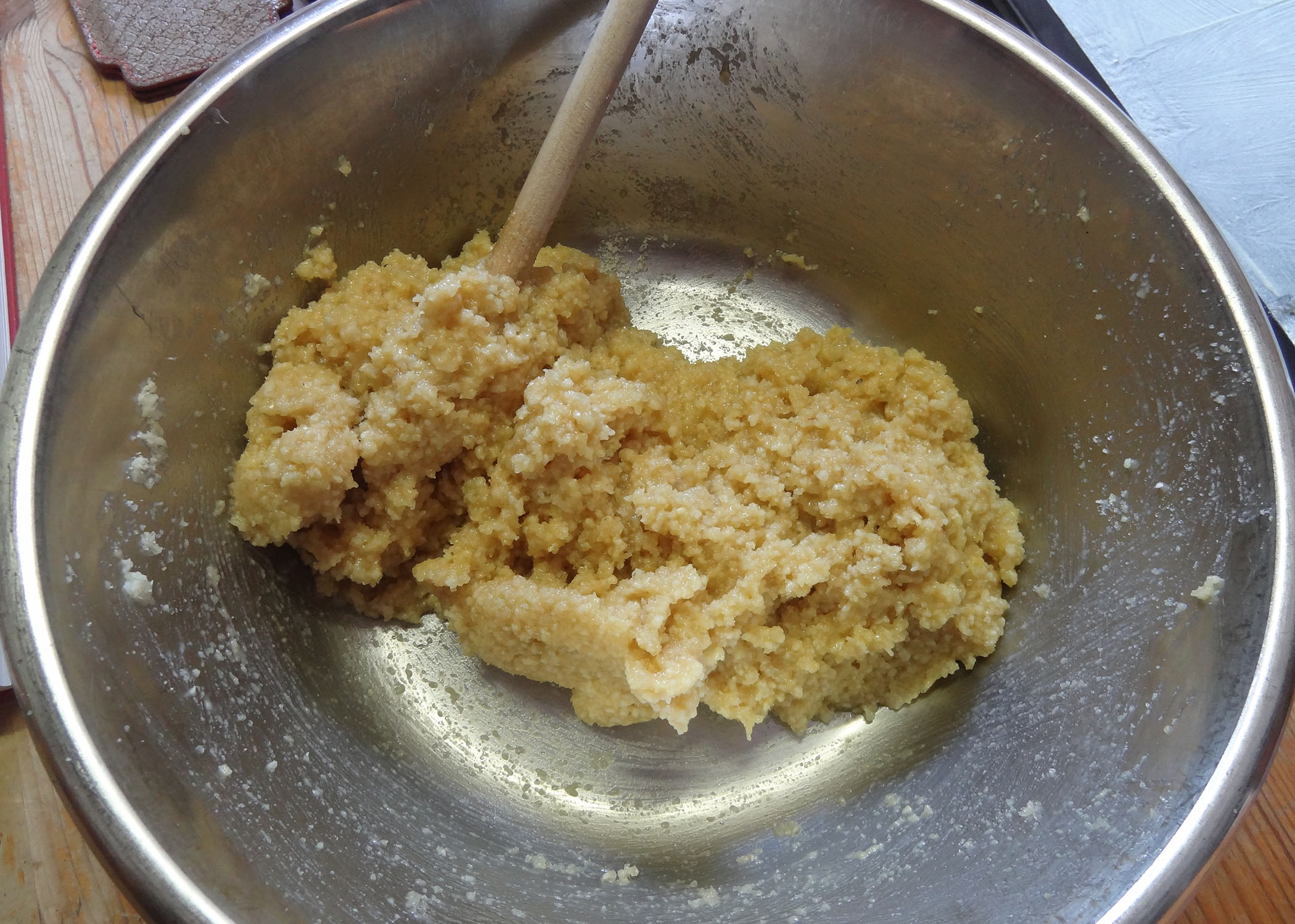 Für die Füllung die Eier, Mandeln, Zucker und Bittermandelaroma gut verrühren und beiseite stellen.