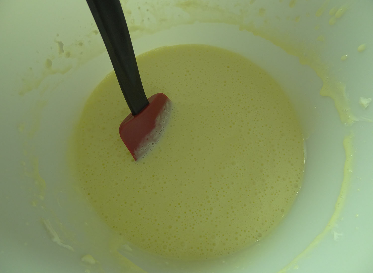 Die Eier verquirlen und gemeinsam mit der Milch unter die Schokoladenmasse mischen. Das Mehl auf die Masse sieben, unterziehen und den Teig in die vorbereitete Form füllen. Im Ofen 20-25min backen und etwas auskühlen lassen. Den Ofen nun auf 150°C Umluft einstellen.
