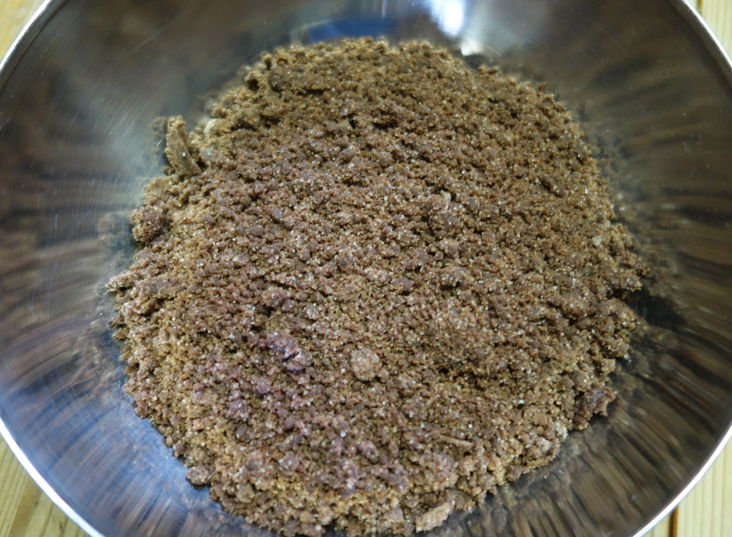2. Für die Streusel Mehl, Zucker, Kakao und Salz vermischen. Die Butter schmelzen und mit der Mehlmischung verrühren, bis Streusel entstehen.