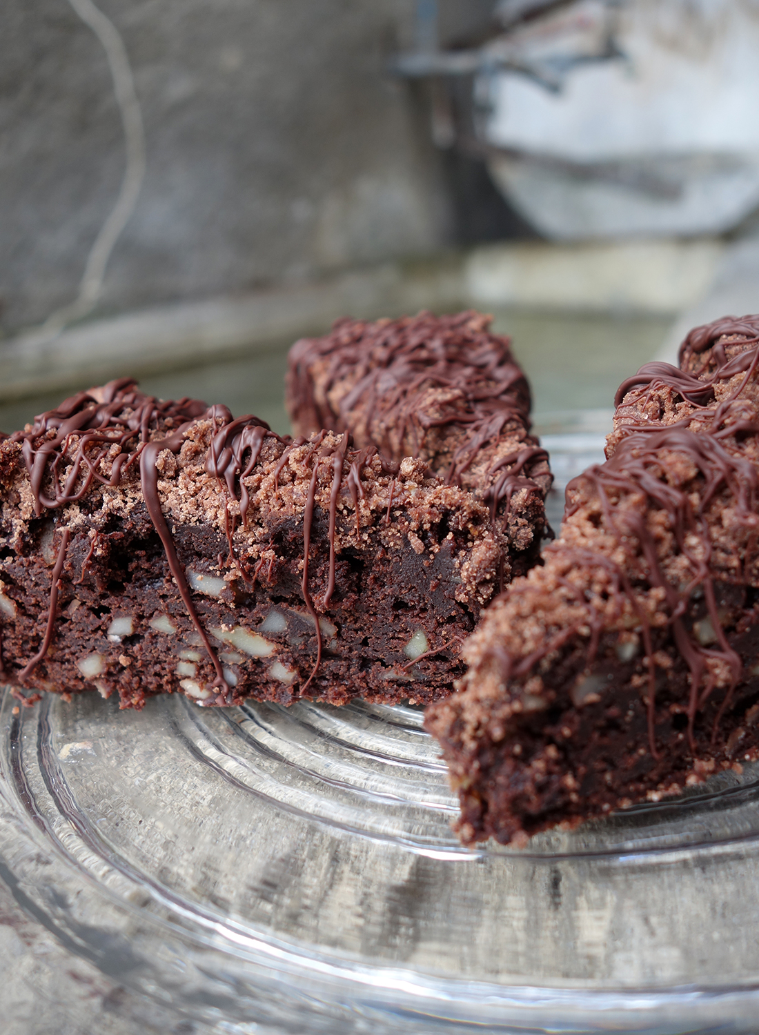 Was halte ich also von einer Kombination meiner geliebten Streusel mit einem feuchten Browniekuchen? Ich muss zugeben, damit kann ich sehr gut leben. Obwohl dieser Kuchen aus lauter Schoko-Komponenten besteht (Brownie, Streusel und Glasur) bin sogar ich diesem Rezept verfallen. Die Streusel verleihen den Brownies einen überraschenden Ausgleich zur Weichheit und lassen den Kuchen dank ihrer lockeren Konsistenz auch etwas weniger schwer wirken.