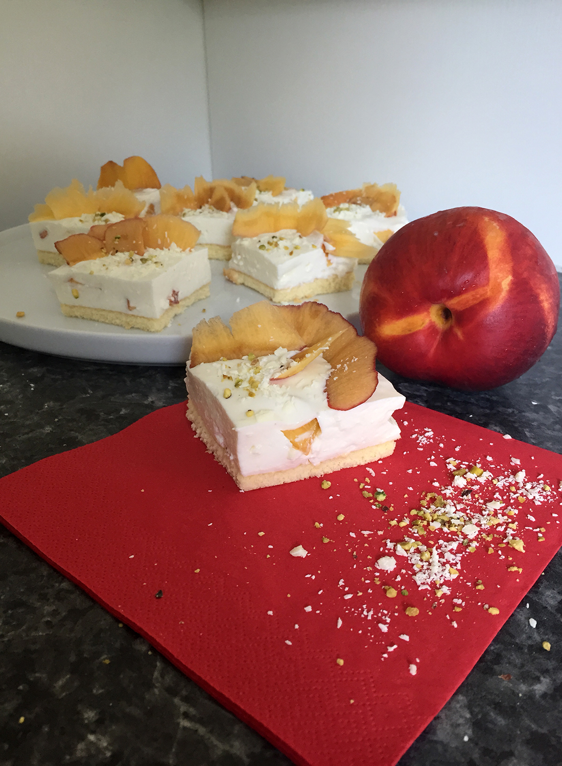 Erfrischende und leichte Schnitten aus Früchten und Joghurt schmecken zu jeder Jahreszeit gut. Und dies lässt sich auch von diesem Nektarinenschnitten behaupten, die nicht viel Zeit und Aufwand benötigen.