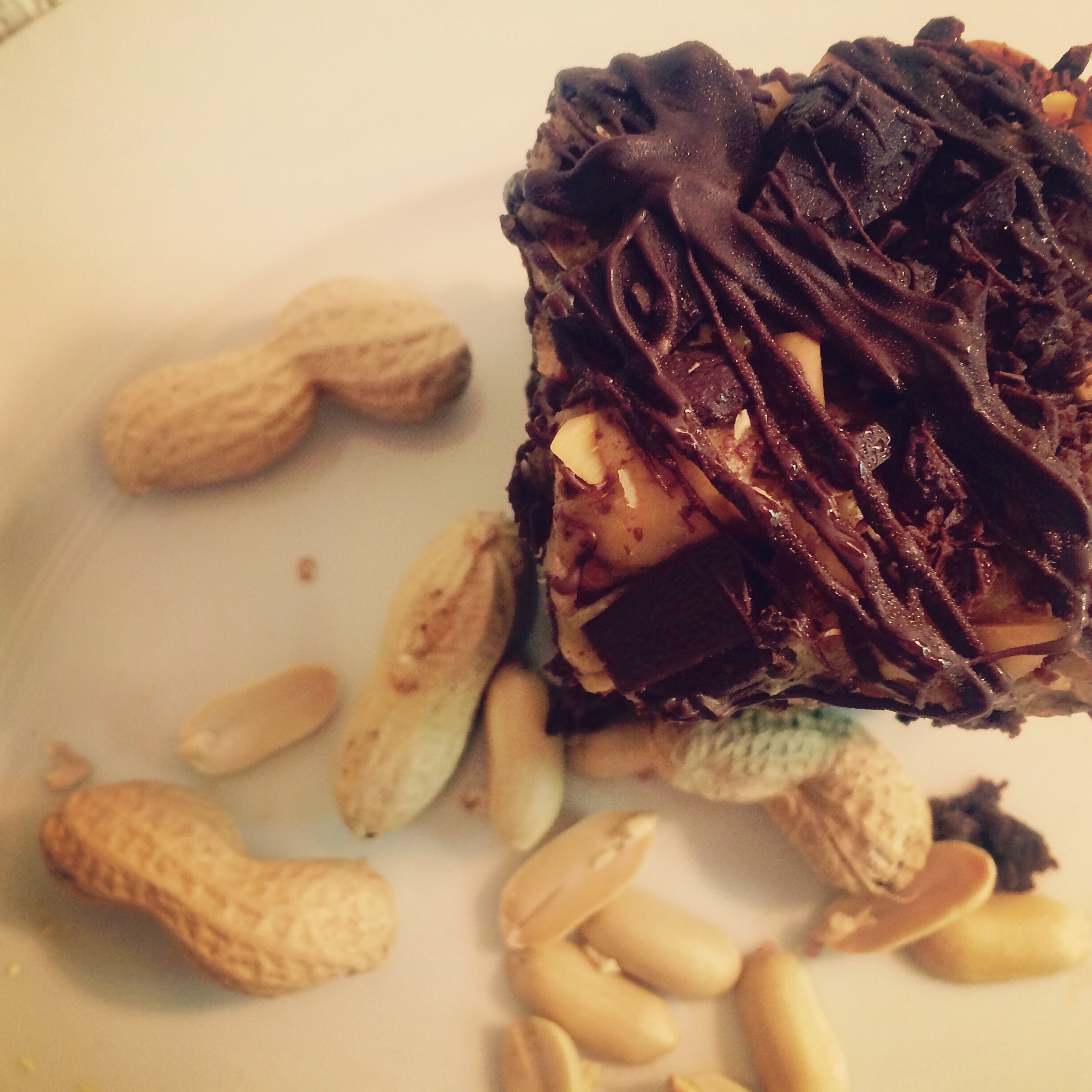 Ich habe das ganze Rezept während eines einzigen Abends zubereitet, würde aber empfehlen die Brownieschicht am Vorabend zu backen und am Folgetag zu füllen. Obwohl die Zubereitung nicht besonders kompliziert ist, braucht sie etwas Zeit: Schokolade hacken, schmelzen, Brownies backen, Erdnüsse rösten und hacken, Füllung zubereiten… Die Schritte häufen sich an und die Zeit vergeht im Nu.