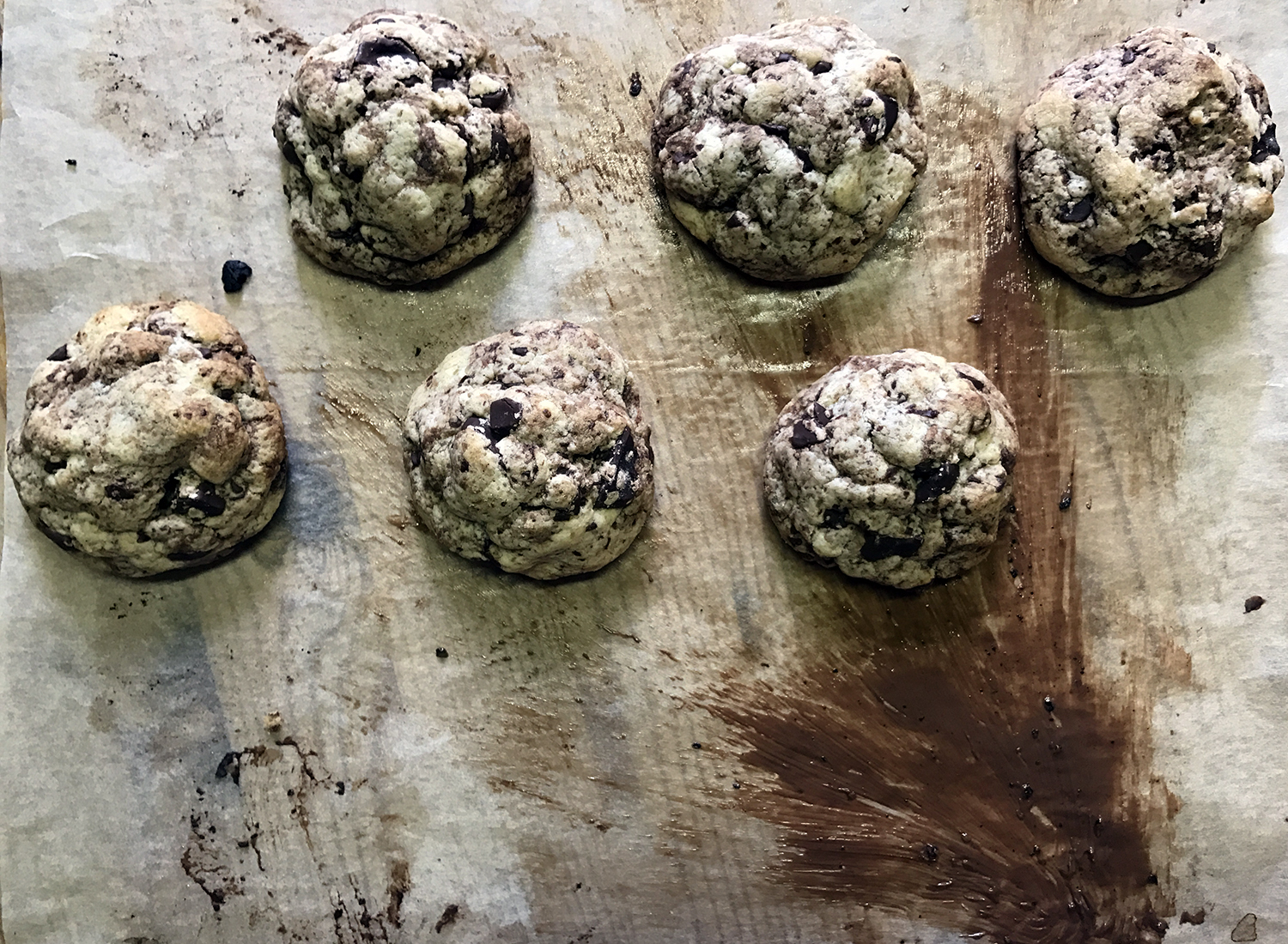- Ofen auf 180°C vorheizen. Cookies auf mehrere Bleche (genügend Abstand zwischen den Kugeln lassen) verteilen und 9min backen. 2-3min auf dem Blech und anschliessend auf einem Gitter auksühlen lassen.